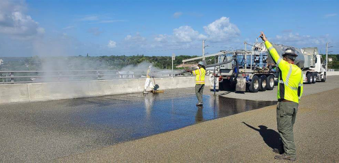 Since active recharging water was found at various closure joint locations FDOT requested to epoxy overlay the bridge deck for additional protection. Crews also coordinated roadway-related work for asphalt roadways, concrete barrier, traffic signaling, lighting, and striping.