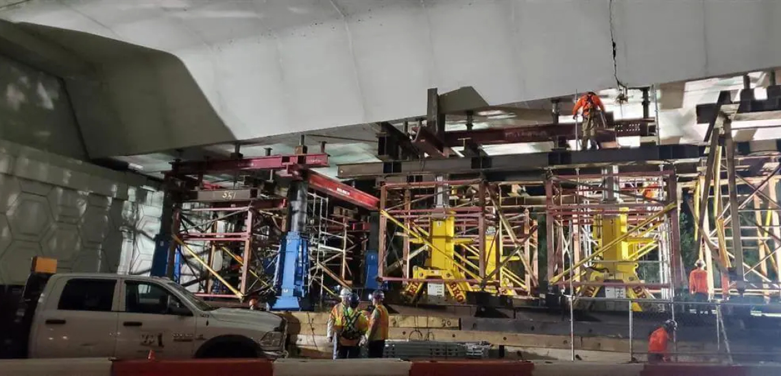 STRUCTURAL TECHNOLOGIES / VSL was chosen to perform repairs to the bridge. The team worked closely with FDOT and their Engineers to analyze the bridge and develop a repair procedure to restore the structure’s capacity. STRUCTURAL TECHNOLOGIES / VSL designed and installed shoring to support the span and performed bridge jacking and lowering to facilitate the work sequence.